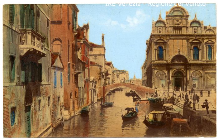 Venezia - Vedute, monumenti, luoghi - Centro storico - Canali e Rii - Castello - Rio dei Mendicanti - Ponte Cavallo - Ospedale civile (ex Scuola Grande di San Marco) - Persone - Gondole - Gondolieri