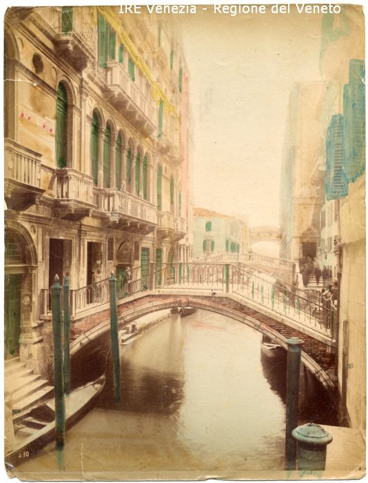 Venezia - Vedute, monumenti, luoghi - Centro storico - Canali e Rii - Castello - Rio di Palazzo o della Canonica: ripreso dal Ponte dei Consorzi - Ponte di Canonica - Ponte dei Sospiri - Insegna di negozio: "[...] Oggetti di cancelleria" - Persone