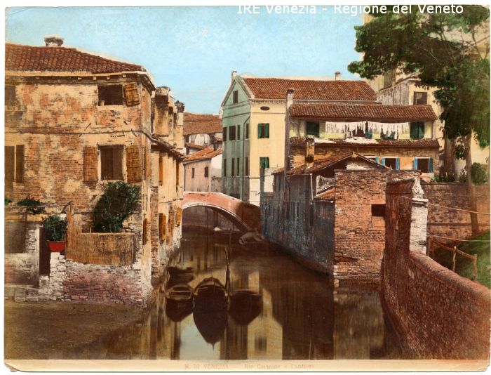 - ISCRIZIONI sul recto: nell'etichetta didascalica sotto l'immagine: al centro - N. 70 VENEZIA - Rio Carmine e Cantiere - fotografica -