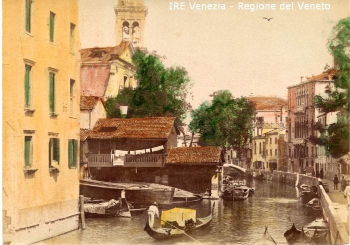 Venezia - Vedute, monumenti, luoghi - Centro storico - Canali e Rii - Dorsoduro - Rio di S. Trovaso o delle Maravege - Squero di S. Trovaso - Chiesa di S. Trovaso