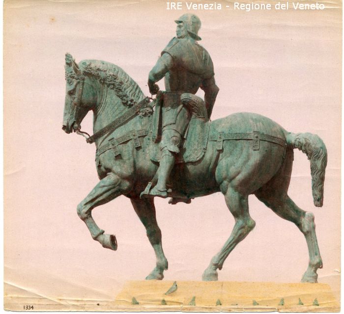 Venezia - Vedute, monumenti, luoghi - Centro storico - Monumenti commemorativi - Monumento equestre a Bartolomeo Colleoni - Dettaglio della parte superiore: statua in bronzo: Bartolomeo Colleoni a cavallo