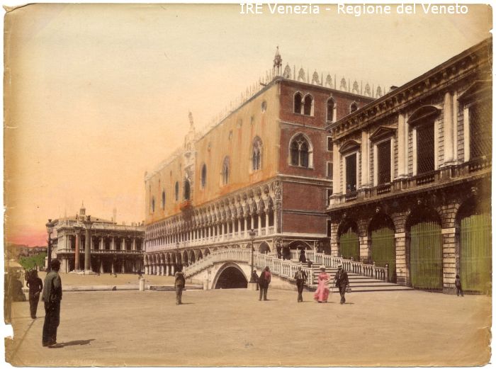 Venezia - Vedute, monumenti, luoghi - Centro storico - Palazzo Ducale: esterni: facciata meridionale (verso il Molo) - Palazzo delle Prigioni - Ponte della Paglia - Piazzetta S. Marco - Colonna di S. Marco - Colonna di S. Teodoro