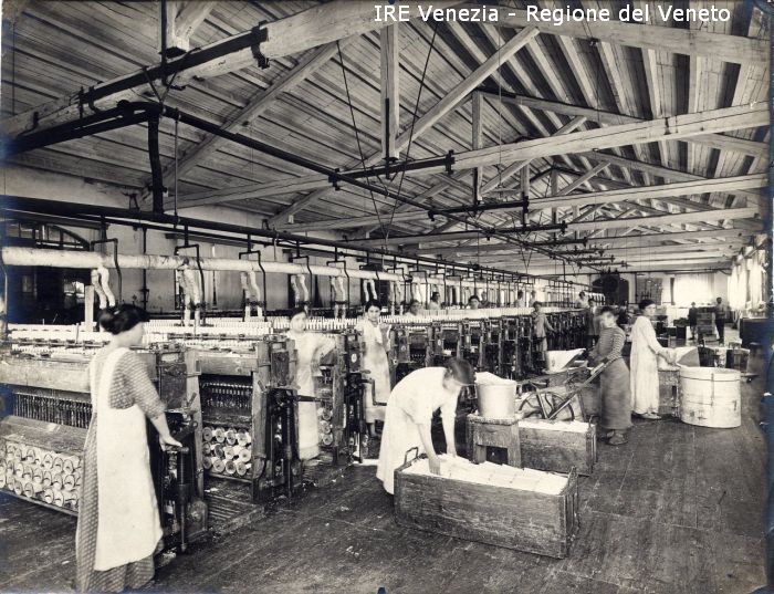 Venezia - Vita veneziana e lagunare - Attività private - Industrie - Candele steariche - Stabilimento Gavazzi & C. a Mira: interno di un reparto - Operaie al lavoro