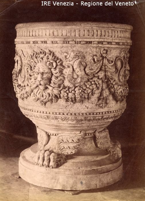 Venezia - Vita veneziana e lagunare - Attività private - Laboratori e Ditte di "Specialità veneziane" - Artigianato: mobilio, arredo e varie - "Deposito di Antichità" - Vera da pozzo - Decorazione scolpita: teste di leone, ghirlande
