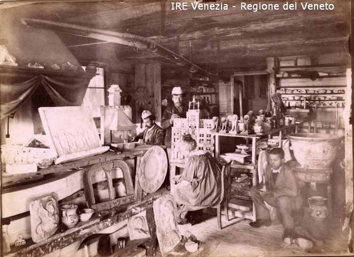 Venezia - Vita veneziana e lagunare - Attività private - Laboratori e Ditte di "Specialità veneziane" - Artigianato: varie - Miss H. G. Macy - Interni della casa-atelier - Laboratorio - Modellini e riproduzioni di oggetti d'arte - Lavoranti