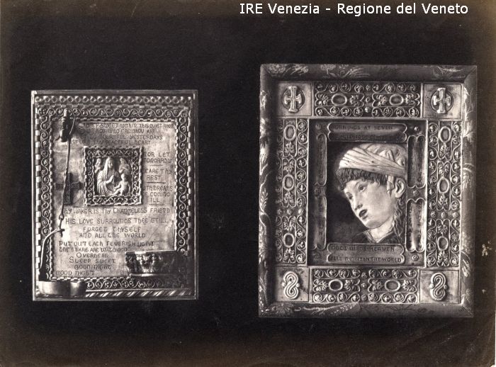 Venezia - Vita veneziana e lagunare - Attività private - Laboratori e Ditte di "Specialità veneziane" - Artigianato: varie - Miss H. G. Macy - Quadri e opere d'arte - Due quadri con iscrizioni in inglese: Madonna col Bambino; Ritratto di fanciulla