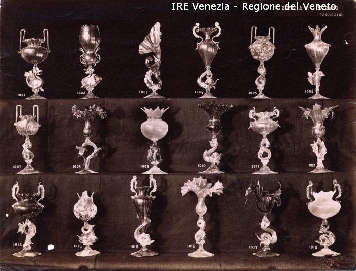 Venezia - Vita veneziana e lagunare - Attività private - Laboratori e Ditte di "Specialità veneziane" - Artigianato: vetrerie - Ditta V. Zuffi & C., Murano - Campionario - Vasi di vetro: diciotto