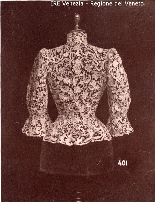 Venezia - Vita veneziana e lagunare - Attività private - Laboratori e Ditte di "Specialità veneziane" - Merletti, campionari anonimi vari - Abito di merletto: camicia da donna