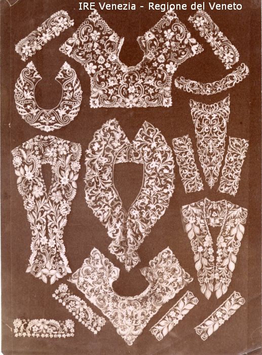 Venezia - Vita veneziana e lagunare - Attività private - Laboratori e Ditte di "Specialità veneziane" - Merletti, campionari anonimi vari - Colletti ed accessori di sartoria: sedici elementi - Colletti - Polsini