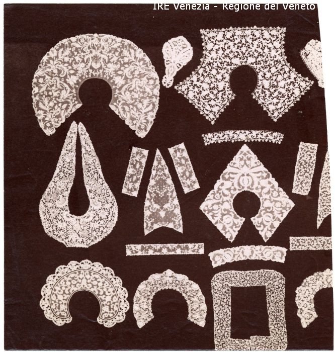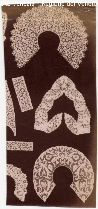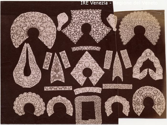 Venezia - Vita veneziana e lagunare - Attività private - Laboratori e Ditte di "Specialità veneziane" - Merletti, campionari anonimi vari - Colletti ed accessori di sartoria: ventitrè elementi - Colletti - Polsini