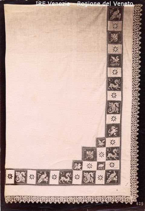 Venezia - Vita veneziana e lagunare - Attività private - Laboratori e Ditte di "Specialità veneziane" - Merletti, campionari anonimi vari - Tenda a bandiera