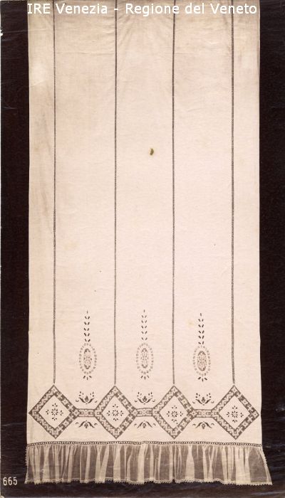 Venezia - Vita veneziana e lagunare - Attività private - Laboratori e Ditte di "Specialità veneziane" - Merletti, campionari anonimi vari - Tenda a pannello con balza