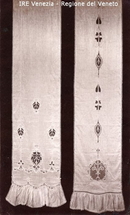 Venezia - Vita veneziana e lagunare - Attività private - Laboratori e Ditte di "Specialità veneziane" - Merletti, campionari anonimi vari - Tende a pannello con balza: due