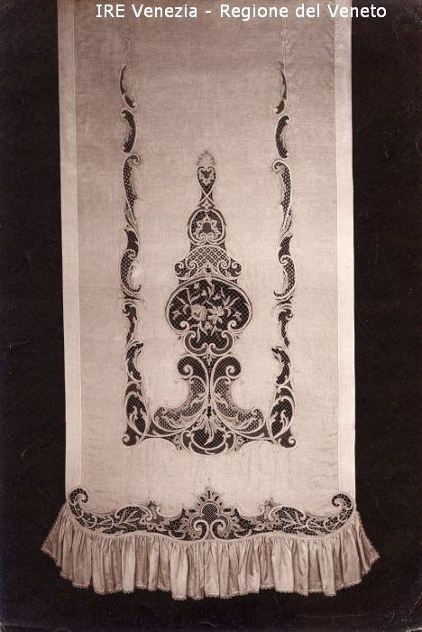 Venezia - Vita veneziana e lagunare - Attività private - Laboratori e Ditte di "Specialità veneziane" - Merletti, campionari anonimi vari - Tenda a pannello con balza