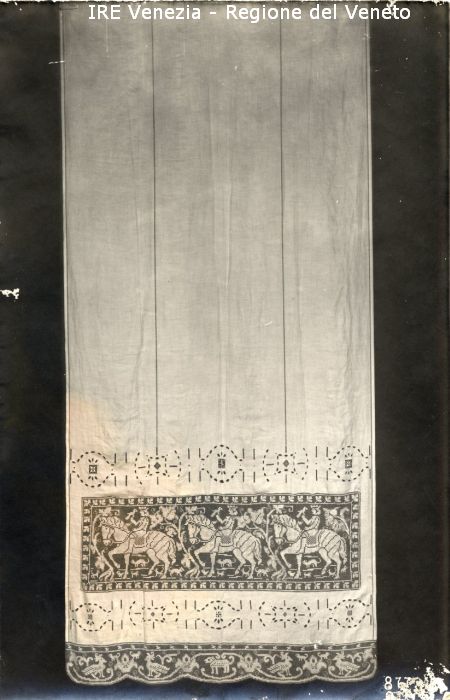 Venezia - Vita veneziana e lagunare - Attività private - Laboratori e Ditte di "Specialità veneziane" - Merletti, campionari anonimi vari - Tenda a pannello con ricamo e intarsio