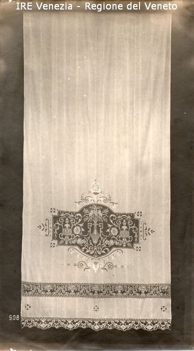Venezia - Vita veneziana e lagunare - Attività private - Laboratori e Ditte di "Specialità veneziane" - Merletti, campionari anonimi vari - Tenda a pannello con ricamo e intarsio