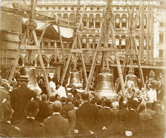 Venezia - Vita veneziana e lagunare - Attività pubbliche - Opere pubbliche - Cerimonie inaugurali del Campanile di S. Marco: benedizione delle campane - Vescovo - Folla