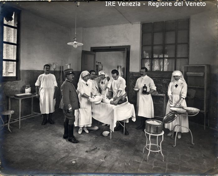 Infermeria - Uomo in uniforme militare - Medici - Feriti di guerra - Dame della Croce Rossa