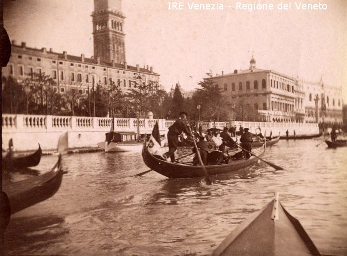 Venezia - Vita veneziana e lagunare - Scene e costumi - Cronaca ed eventi - Bacino di S. Marco - Gondole e lance all'ingresso acqueo del Palazzo Reale - Persone