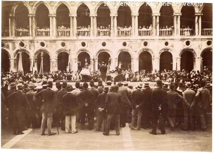 Venezia - Vita veneziana e lagunare - Scene e costumi - Cronaca ed eventi - Palazzo Ducale: cortile interno - Manifestazione sportiva: gara di fioretto - Folla