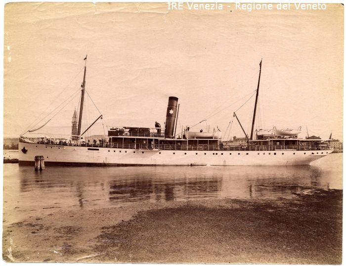 Venezia - Vita veneziana e lagunare - Scene e costumi - Cronaca ed eventi - Piroscafo ancorato nel Bacino di S. Marco - Iscrizione sulla prua: "Hegedus Sandor"