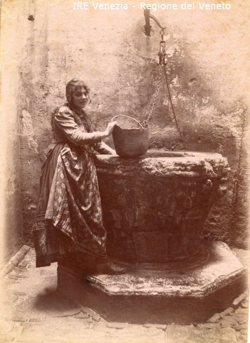 Venezia - Vita veneziana e lagunare - Scene e costumi - "D'après nature" - Modelli in posa per scene di genere - Modella in foggia di popolana al pozzo