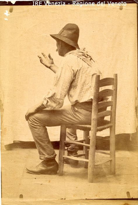 Venezia - Vita veneziana e lagunare - Scene e costumi - Scene di genere - Modelli in posa in studio - Studio su uomo seduto di schiena
