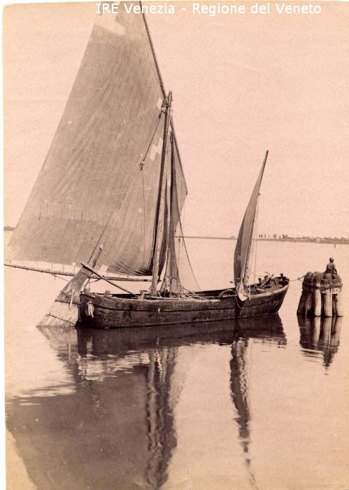 Venezia - Vita veneziana e lagunare - Scene e costumi - Laguna di Venezia - Pescatori e imbarcazioni da pesca in Laguna - Bragozzo - Pescatore seduto su una dama (brìcole)