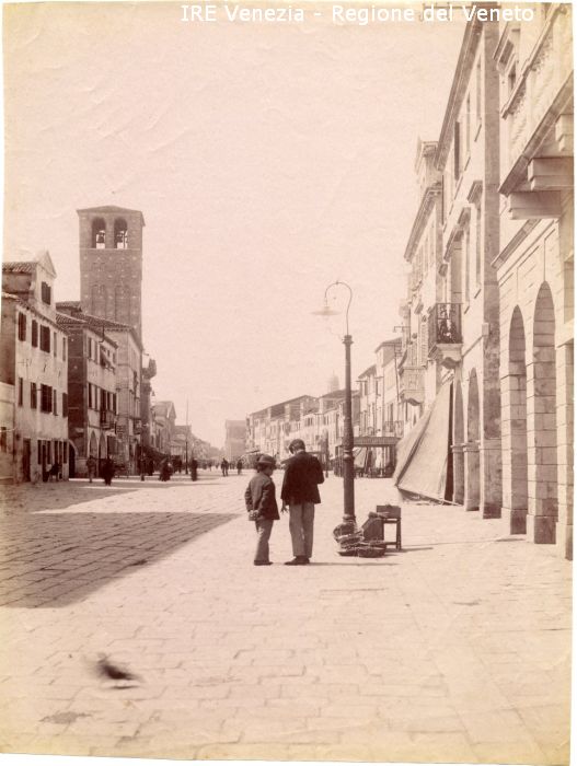 Venezia - Vita veneziana e lagunare - Scene e costumi - Territorio di Chioggia - Chioggia: corso Vittorio Emanuele; veduta - Due bambini - Passanti