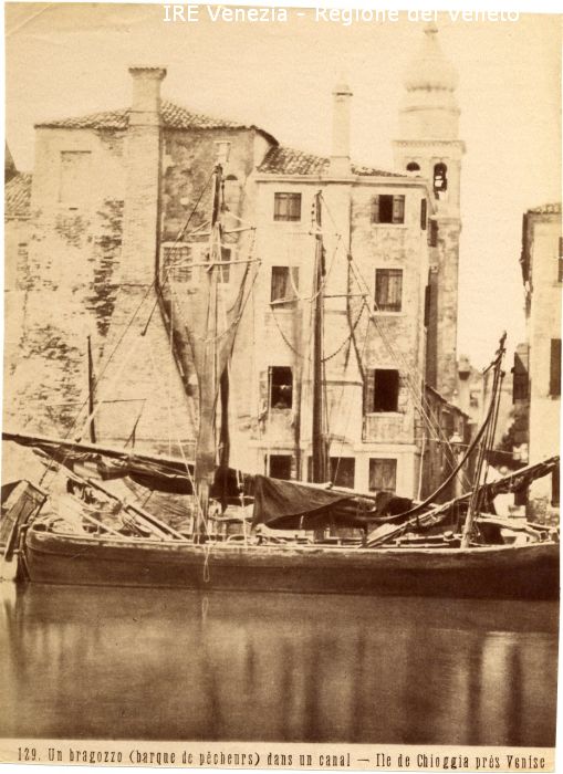 - ISCRIZIONI sul recto: nell'etichetta didascalica sotto l'immagine - 129. Un bragozzo (barque de pecheurs) dans un canal - Ile de Chioggia prés Venise - fotografica -