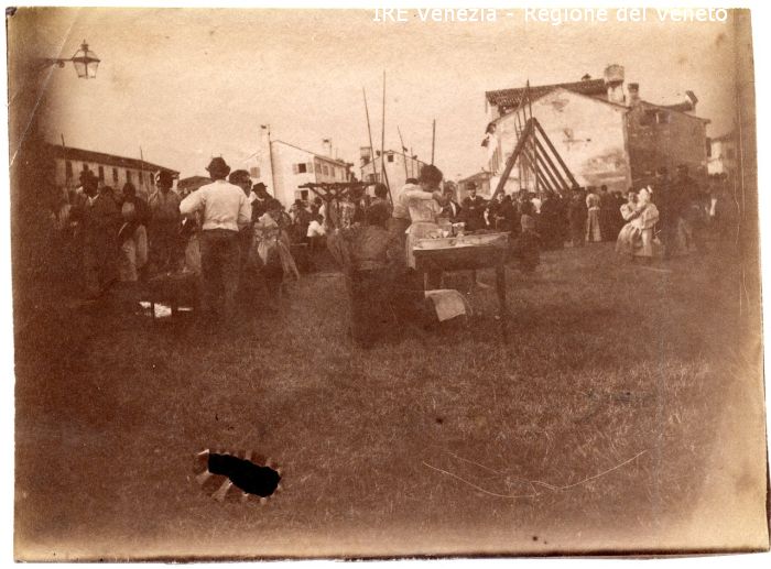 Venezia - Vita veneziana e lagunare - Scene e costumi - Manifestazioni religiose - Festa del Redentore - Giudecca - "Corti grandi" - Tavolacci - Persone che mangiano