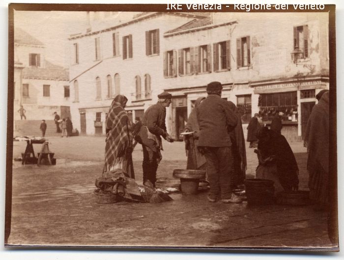Venezia - Vita veneziana e lagunare - Scene e costumi - Mercato, negozi, bancarelle - Campo S. Pantalon - Venditori ambulanti - Scena di mercato