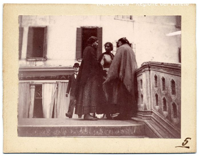 Venezia - Vita veneziana e lagunare - Scene e costumi - Momenti di vita quotidiana - Campo dei Frari - Ponte: verso la Fondamenta dei Frari - Donne - Conversazione - Passante