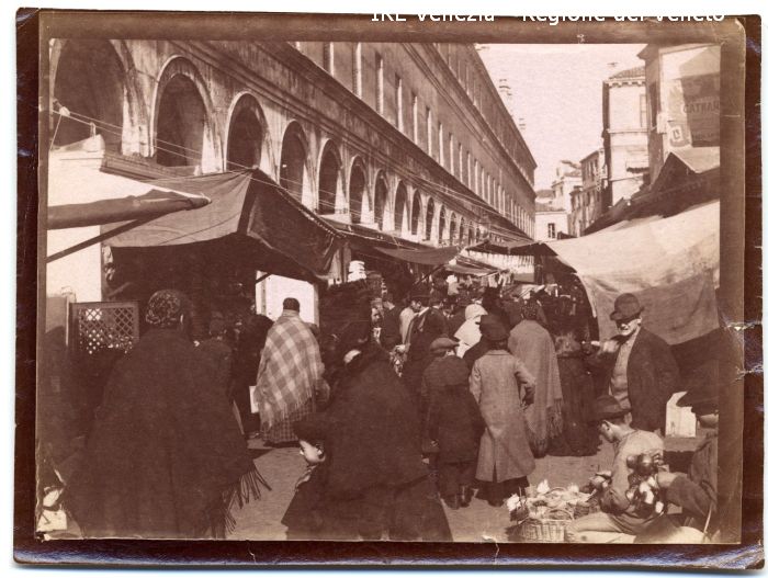 Venezia - Vita veneziana e lagunare - Scene e costumi - Mercato, negozi, bancarelle - Rialto - Ruga S. Giacometto o degli Orefici - Mercato