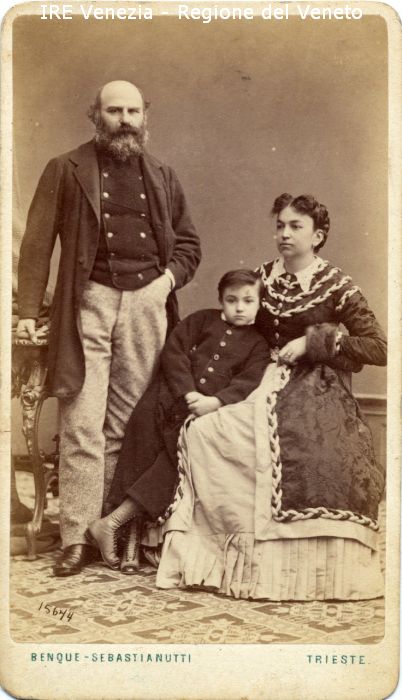 Ritratti: in studio; figura intera - Ritratto della famiglia Brocchi - Uomo: con baffi, barba e basette; in piedi, con la mano destra poggiata su un tavolino e la mano sinistra in tasca - Vestiario: giacca scura, pantaloni chiari