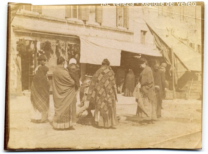 Venezia - Vita veneziana e lagunare - Scene e costumi - Mercato, negozi, bancarelle - Campo S. Margherita - Ambulante - Popolane