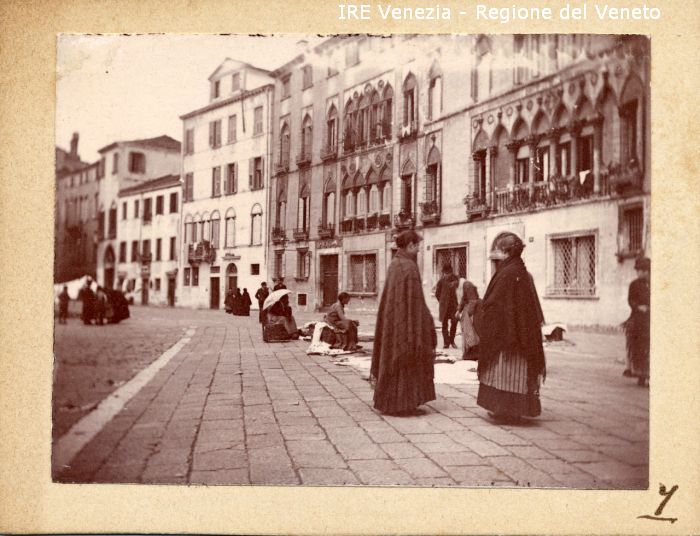 Venezia - Vita veneziana e lagunare - Scene e costumi - Momenti di vita quotidiana - Campo S. Polo - Panni, lenzuola - Conversazione - Persone