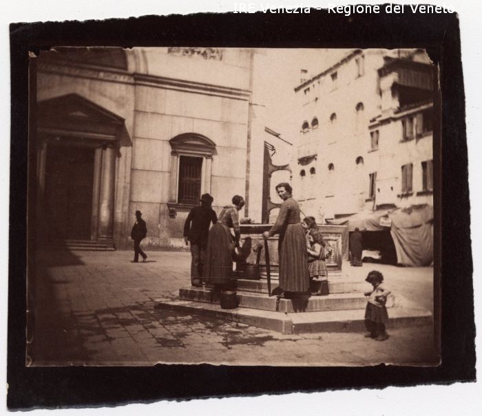 Venezia - Vita veneziana e lagunare - Scene e costumi - Momenti di vita quotidiana - Campo S. Maurizio - Vera da pozzo - Popolane - Raccolta d'acqua