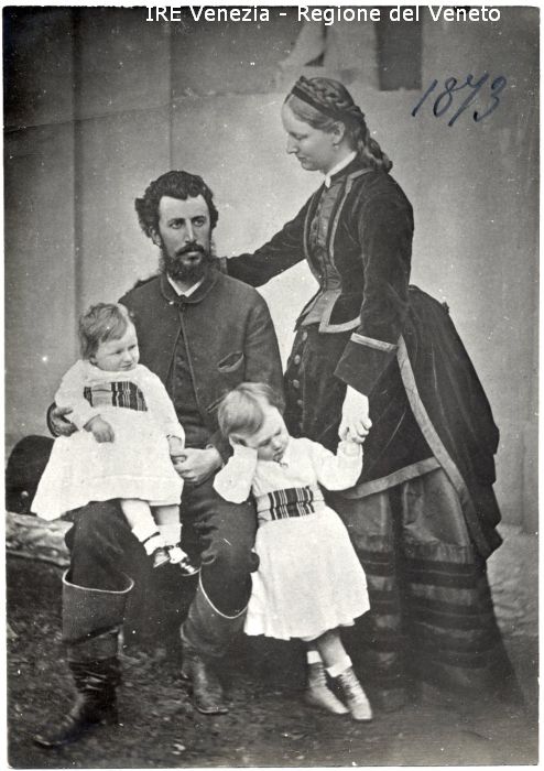Ritratti di componenti della famiglia Borghese - Ritratti: in studio, figure intere - Uomo: con baffi e barba, seduto, una figlia in braccio - Vestiario: stivali - Donna: in piedi, in profilo, mano sulla spalla del marito, tiene per mano una figlia