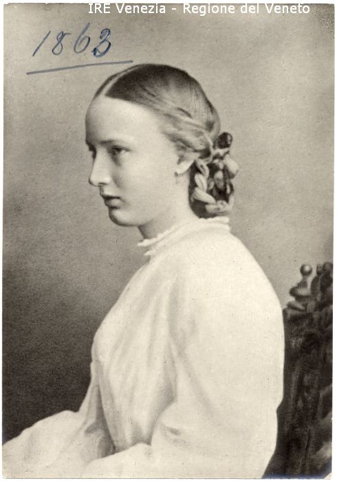 Ritratto della Principessa Borghese - Ritratto: in studio, mezzo busto, in profilo - Donna: giovane, seduta - Acconciatura: capelli raccolti, treccia - Vestiario: abito chiaro - Gioielli: orecchini - Sfondo