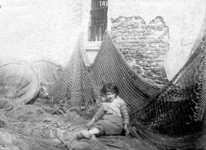 Venezia - Vita veneziana e lagunare - Territorio di Chioggia - Scene di vita quotidiana - Una bambina - Reti da pesca