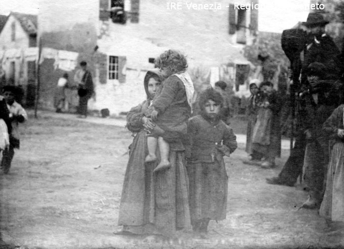 Vita veneziana e lagunare - Territorio di Chioggia - Esterno: strada - Gruppo di bambini - Abitazioni