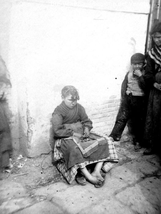 Vita veneziana e lagunare - Territorio di Chioggia - Esterno: strada - Una bambina seduta per terra - Gruppo di bambini