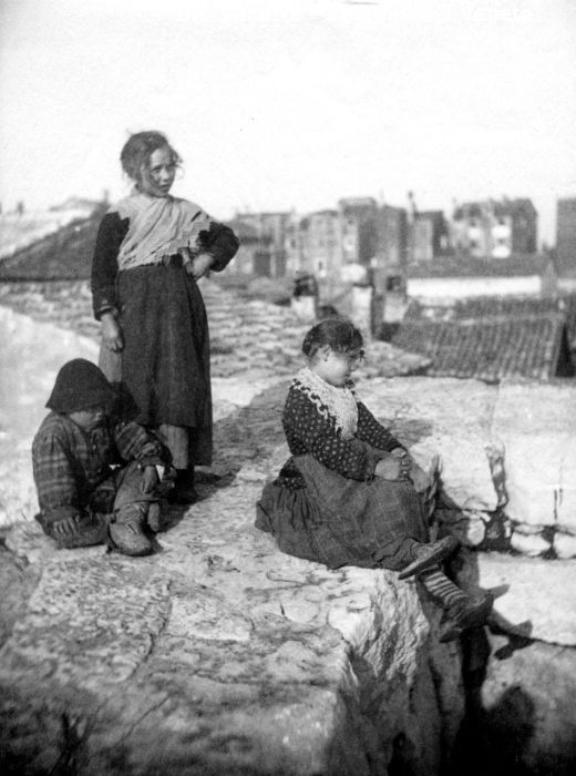 Vita veneziana e lagunare - Scene e costumi - Territorio di Chioggia - Gruppo di bambini sui murazzi
