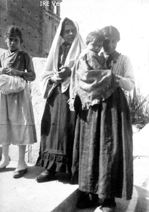 Vita veneziana e lagunare - Chioggia - Gruppo di donne con bambini ai piedi di un ponte - Sullo sfondo: imbarcazioni in una fondamenta