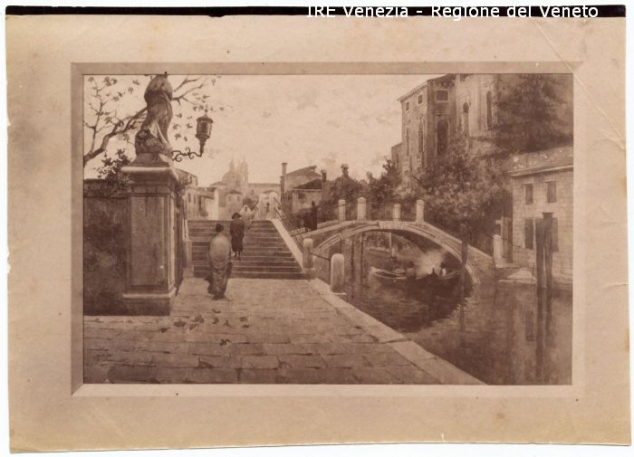 Zanetti Zilla, Vittore, Veduta con persone canale e ponti