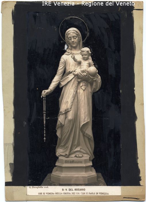 Sul verso della fotografia catalogata è incollata un'altra albumina rappresentante la statua della Beata Vergine del Rosario dello scultore Dureghello.