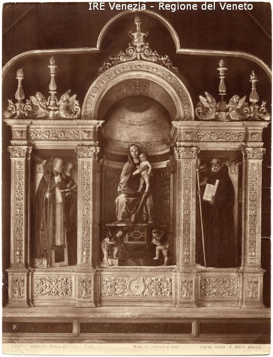 - ISCRIZIONI sul recto: in basso - 1120/ VENEZIA. Chiesa dei Frari - Bellini Giovanni/ Madonna, Bambino e Santi/ (riprod. interd.) C. NAYA Venezia - fotografica -