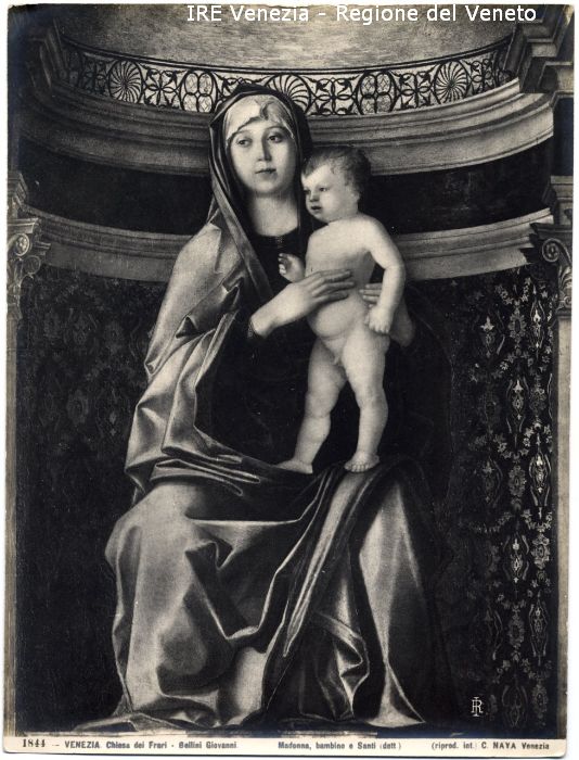 - ISCRIZIONI sul recto: in basso - 1844 - VENEZIA. Chiesa dei Frari - Bellini Giovanni/ Madonna, Bambino e Santi (dett)/ (riprod. interd.) C. NAYA Venezia - fotografica -