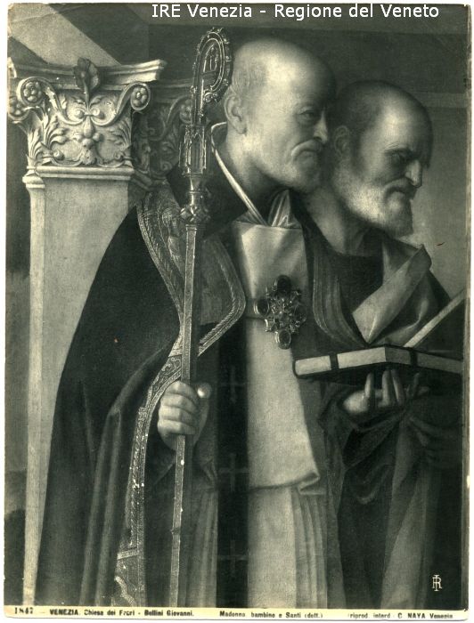 - ISCRIZIONI sul recto: in basso - 1847 - VENEZIA. Chiesa dei Frari - Bellini Giovanni/ Madonna, Bambino e Santi (dett.)/ (riprod. interd.) C. NAYA Venezia - fotografica -